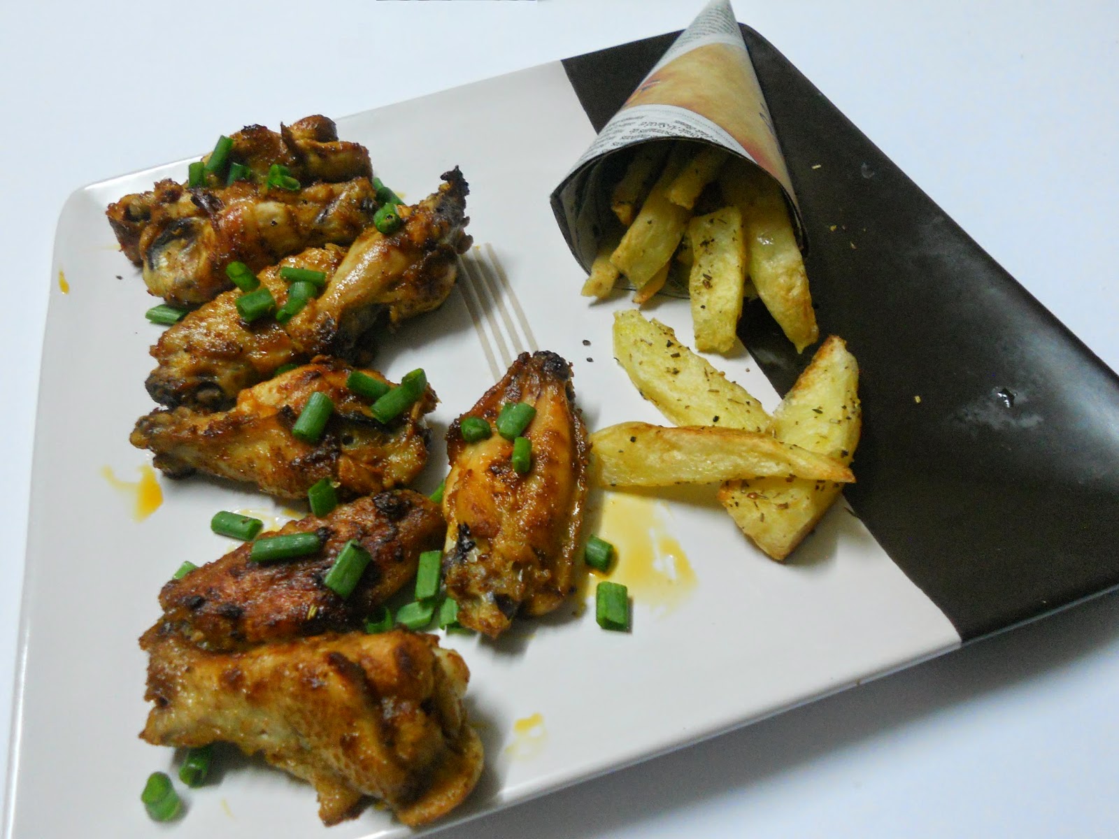 Just mix,in a ziplock bag or a bowl, about 20 chicken wings, 1/2 cup lime juice, 1 tablespoon (Tsp) crushed garlic and 2 teaspoons (tsp) chilli powder (completely optional) or Paprika (if you are not too spicy). Season with salt and pepper. Shake it well so that the chicken wings are well coated and bake them for about 1 hour at 200 degrees in an oven.